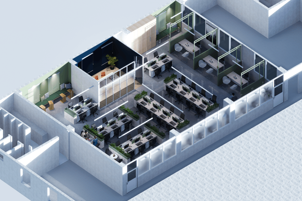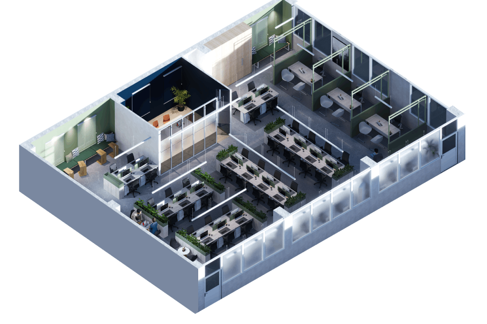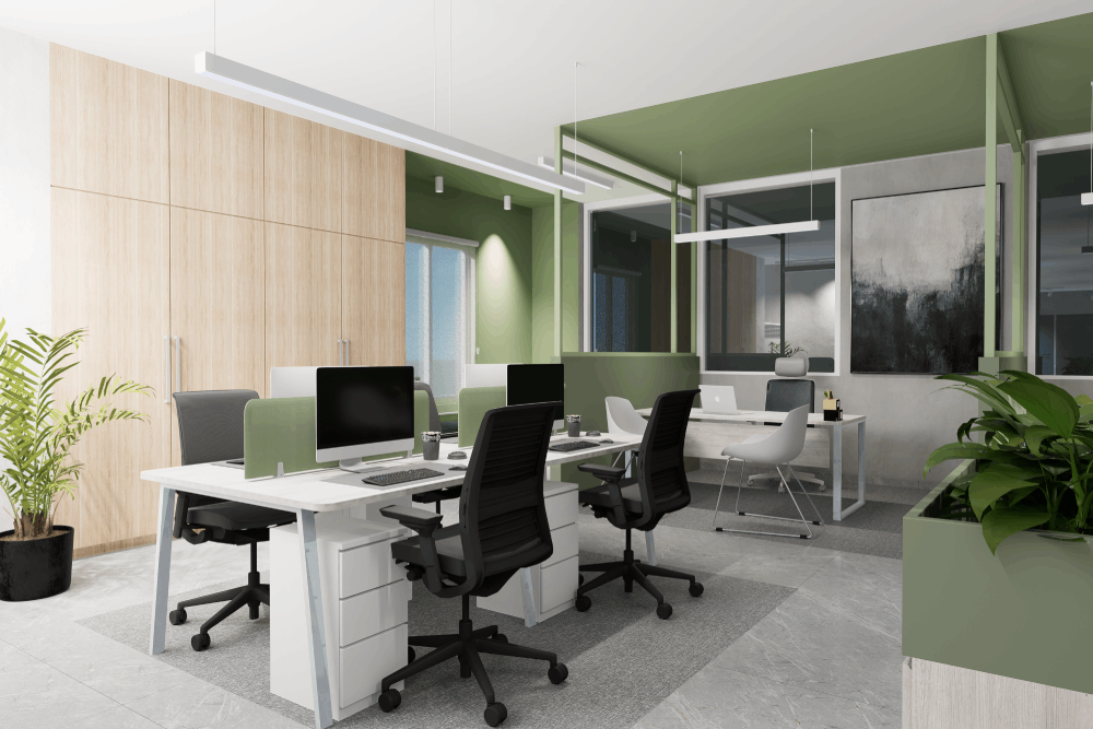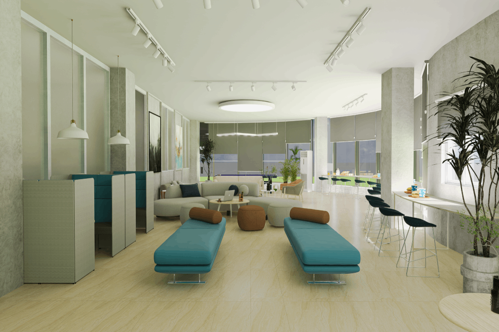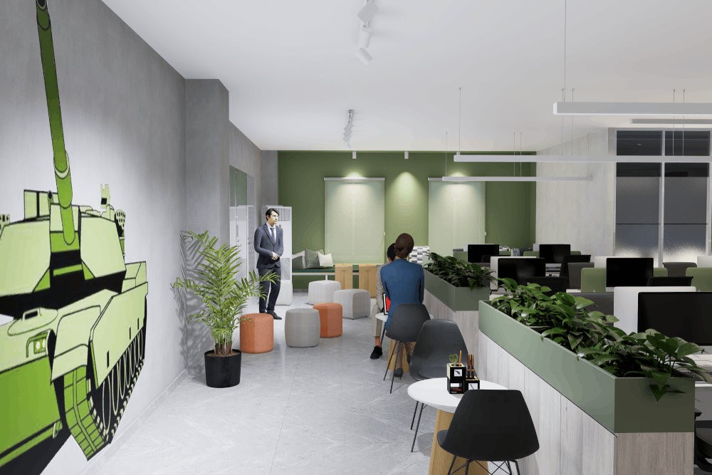 Design approach was designed to minimize the cluster of workspace, as an army and government’s office environment is crowded with work. The clear height was 10′-0″, so we gave it floor-to-ceiling glass doors and partitions to give it a heightened look. The design is surrounded by Curtain walls enhancing the beauty and providing views of low heightened buildings of the city. The office is filled with Sunlight/ natural light combined with customized paintings and foliage, making a relaxing and breathable space. The maximum woodwork with tactile lamination creates a very impressive grain appearance on the panels. A carefully chosen color palette reflects the openness of the space and design. Every detail has been carefully designed, from the ceiling to the custom-designed workstations to every piece of furniture, to provide the client with a comfortable space and efficient design solution.