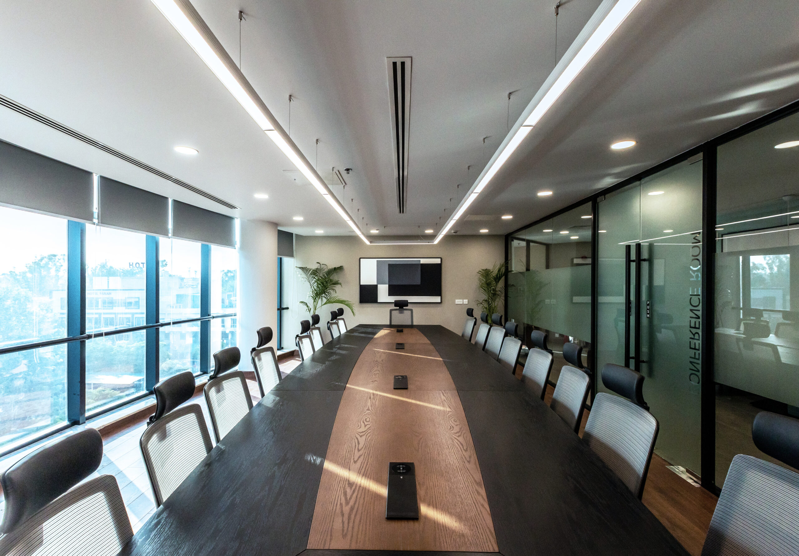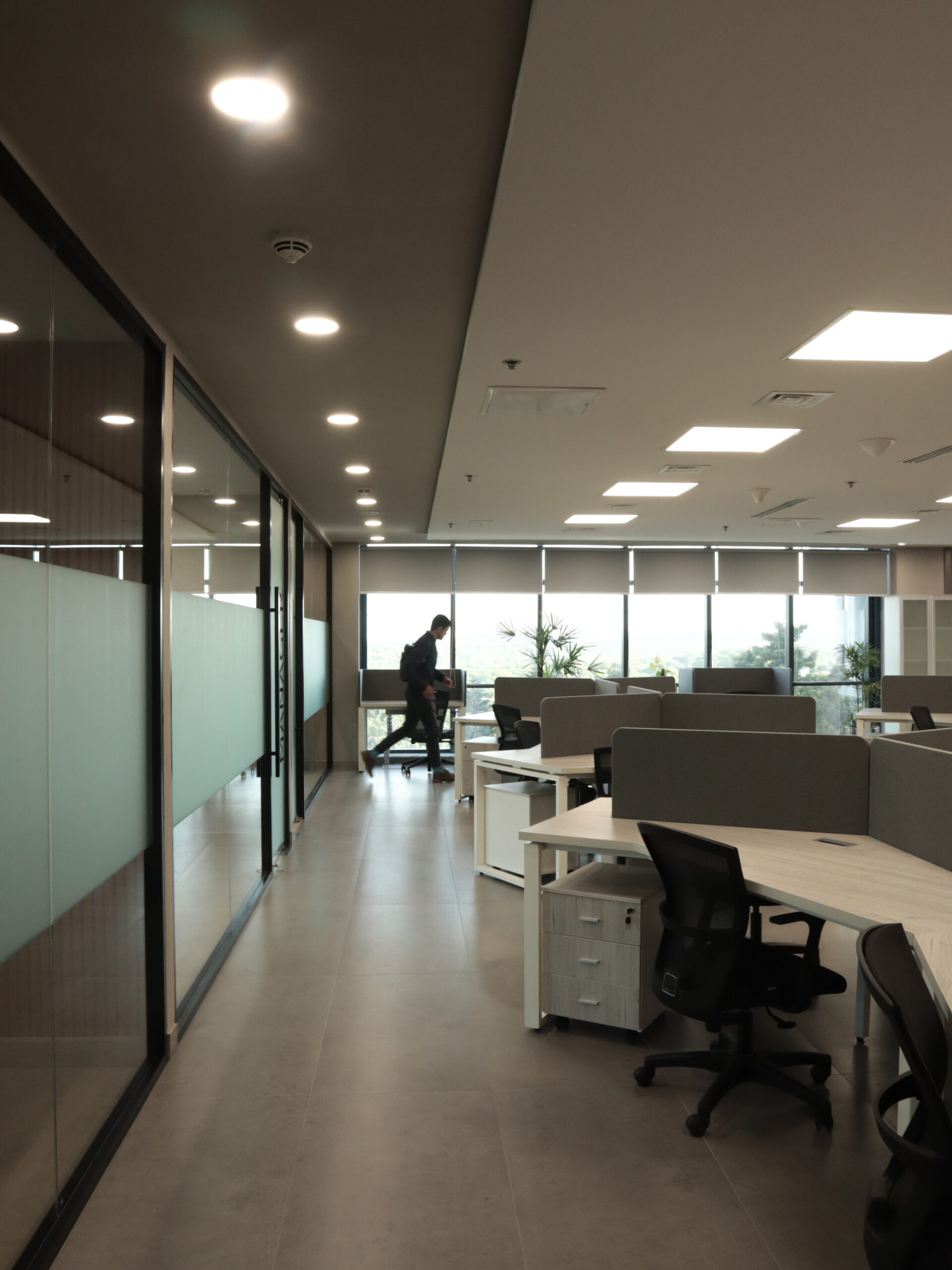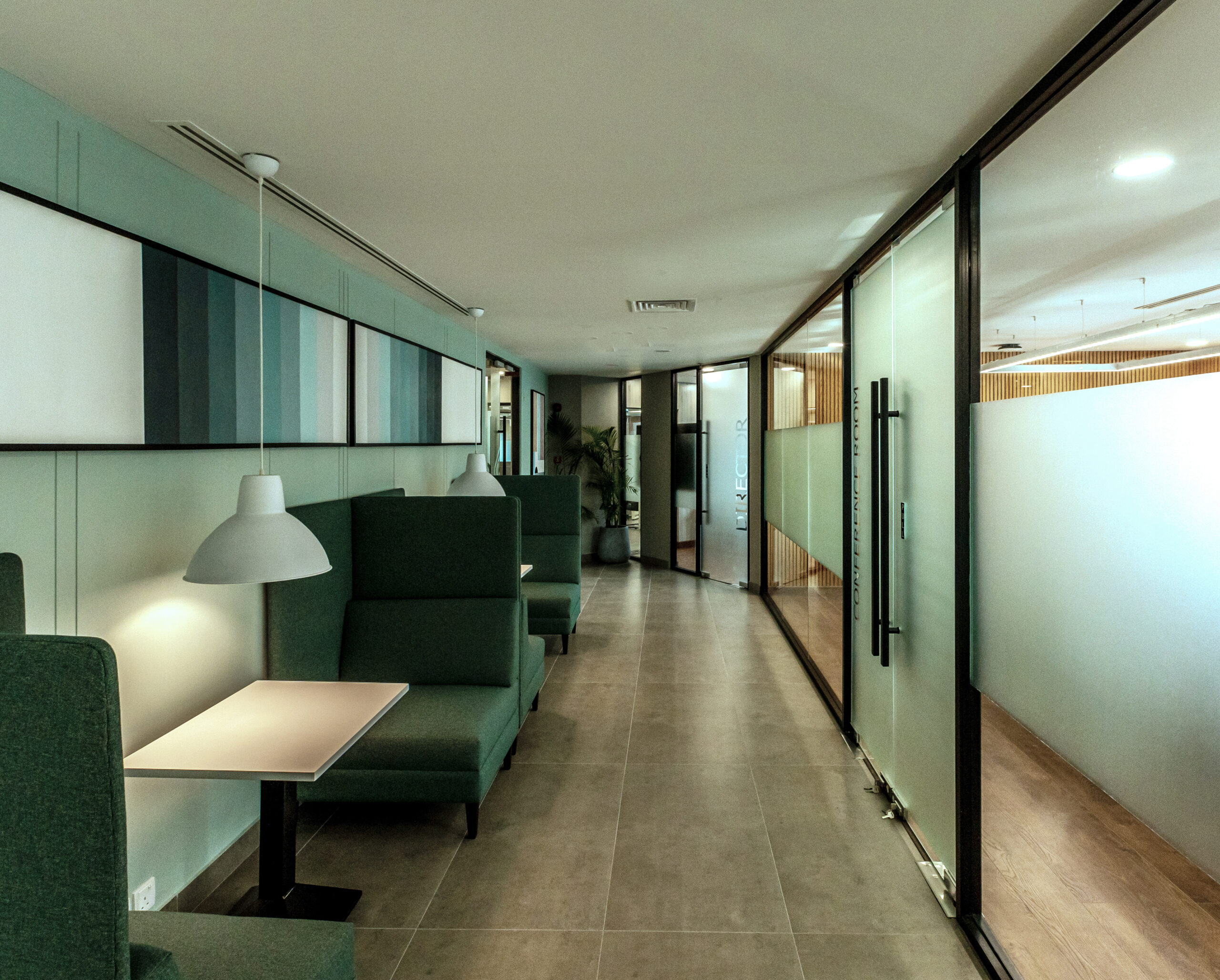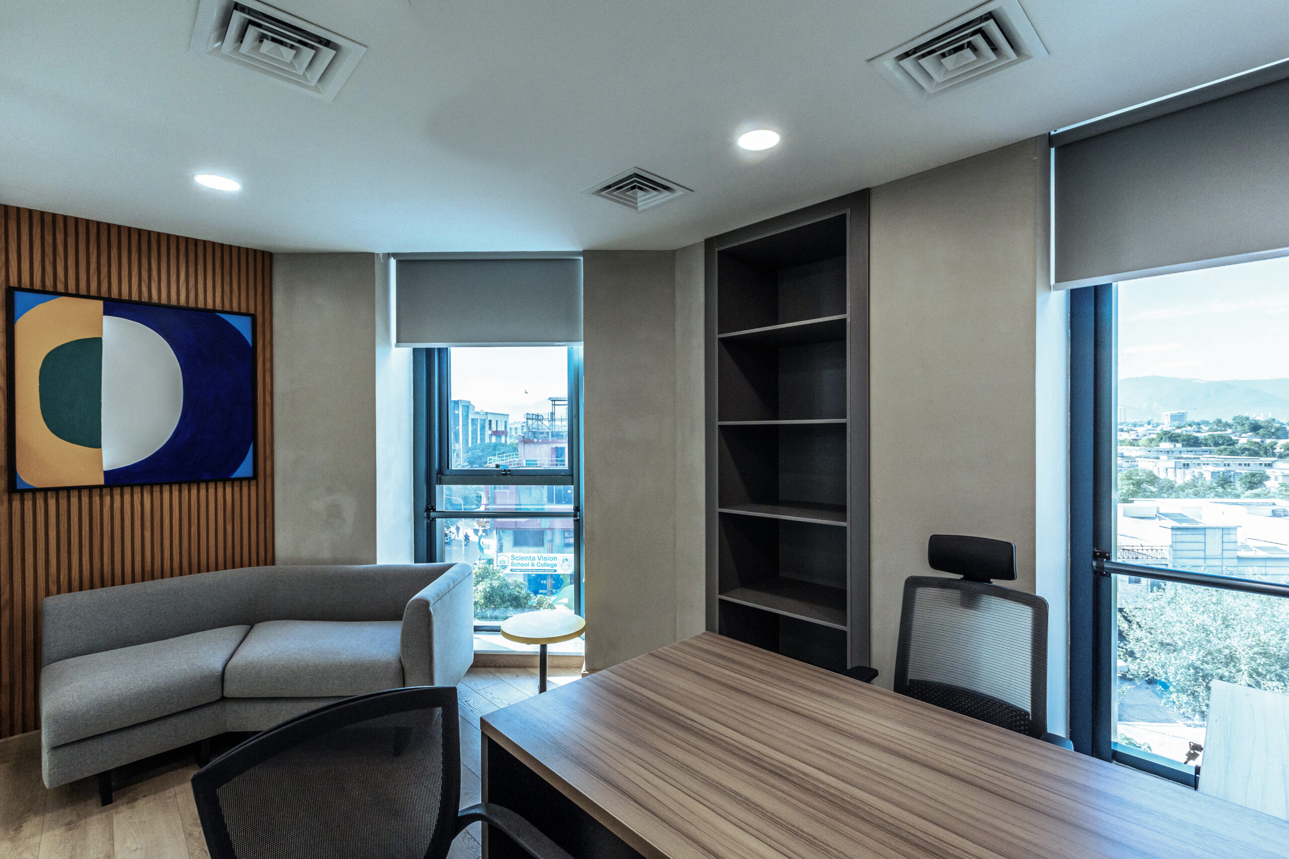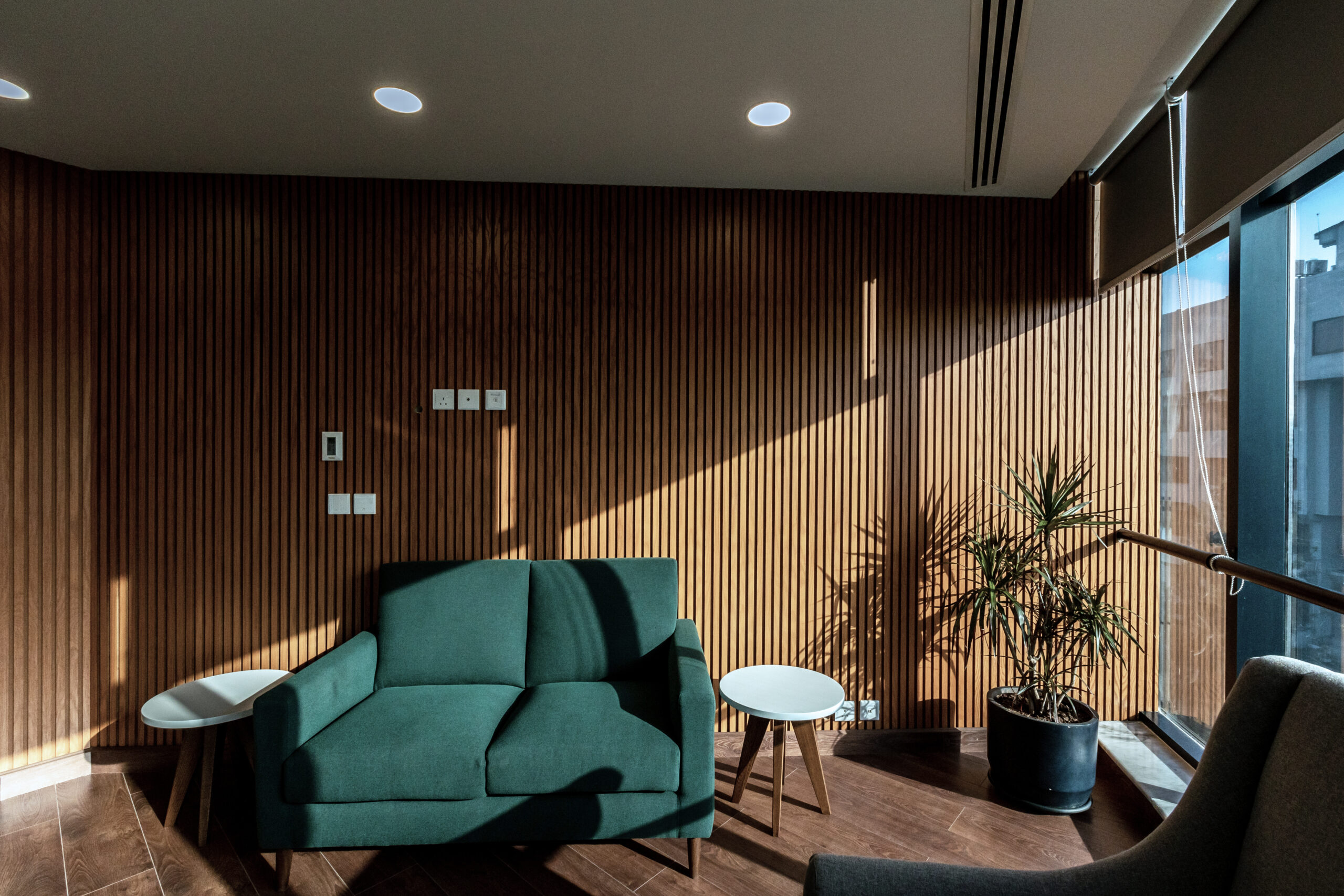 Design approach was designed to minimize the cluster of workspace, as an army and government’s office environment is crowded with work. The clear height was 8’8″, so I gave it floor-to-ceiling glass doors and partitions to give it a heightened look. The design is surrounded by Curtain walls enhancing the beauty and providing views of low heightened buildings upto the Margalla hills/ vast view of the city upto the Margalla hills. The office is filled with Sunlight/ natural light combined with customized paintings and foliage, making a relaxing and breathable space. The maximum woodwork with oak veneer creates a very impressive grain appearance on the panels. A carefully chosen color palette reflects the openness of the space and design. Every detail has been carefully designed, from the ceiling to the custom-designed workstations to every piece of furniture, to provide the client with a comfortable space and efficient design solution.