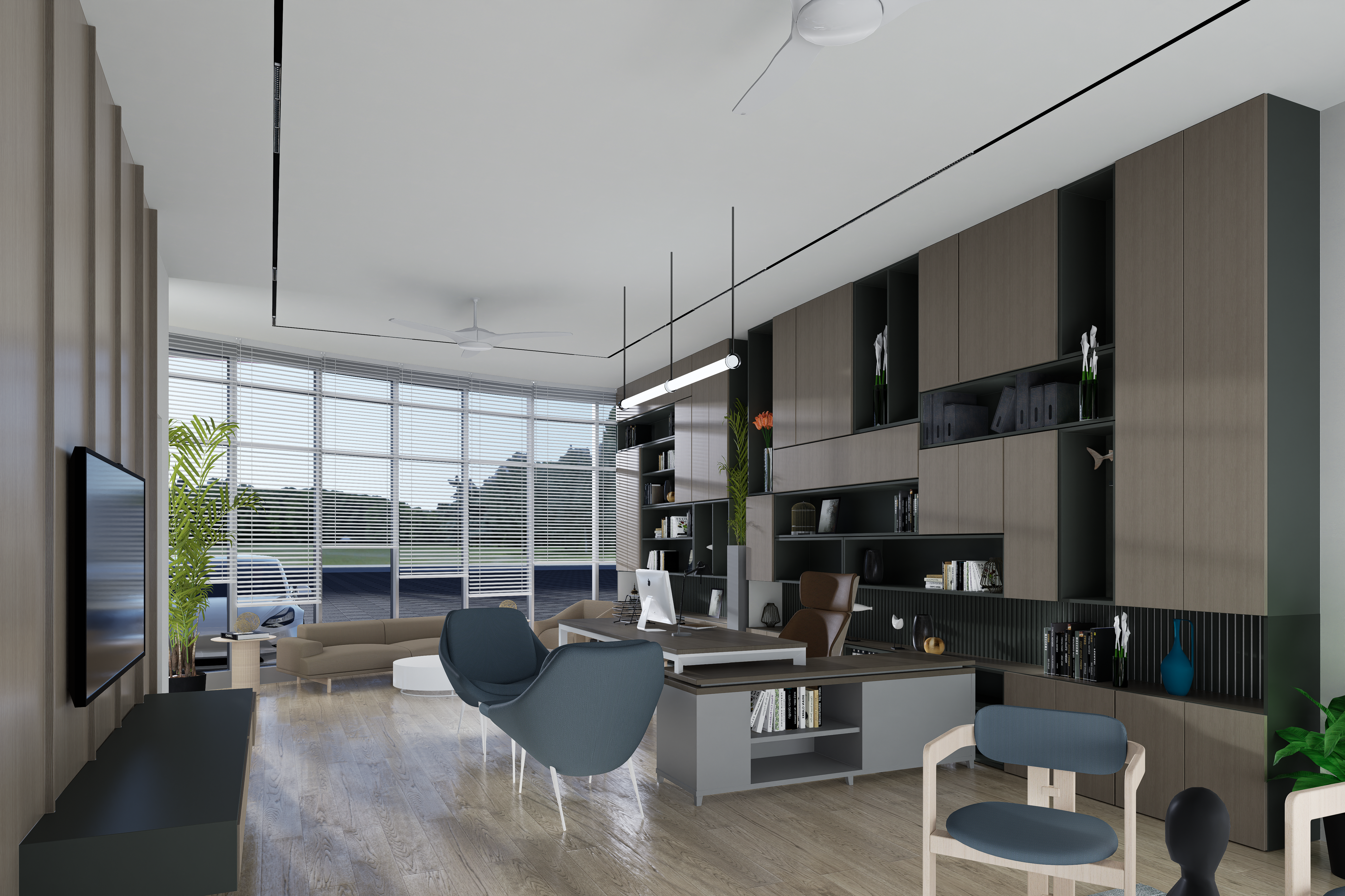 A perfect blend of modern elegance and professional sophistication. This executive office exudes confidence and poise. Ideal for corporate leaders and visionaries.